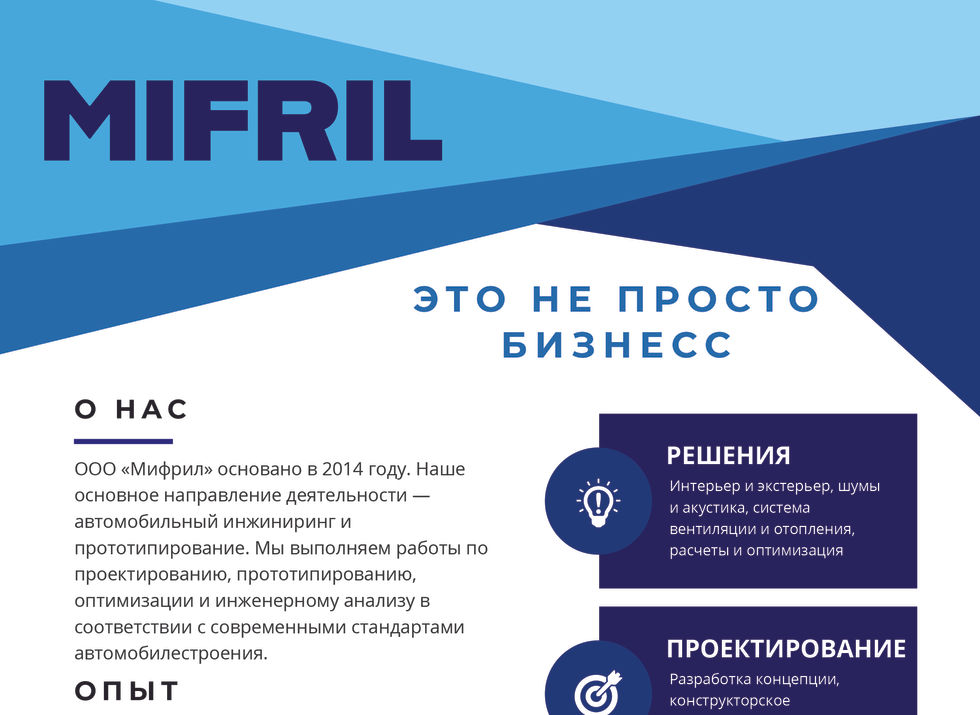 During my internship in Russia, I had the opportunity to lead the rebranding of MIFRIL, a company specializing in innovative solutions for automobiles and transportation vehicles. This project challenged me to navigate a new industry, allowing me to create a fresh visual identity, cohesive brand style, and an engaging website. The experience not only strengthened my design skills but also deepened my understanding of branding for technology-driven markets.